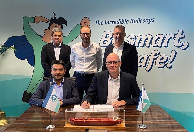 Berge Bulk CEO James Marshall and ABS Vice President of Global Sustainability Panos Koutsourakis signed the agreement which will see BB and ABS explore the possibility of retrofitting the 300-meter-long heavy fuel oil propelled bulk carrier BERGE MAUNA KEA to operate on methanol fuel.