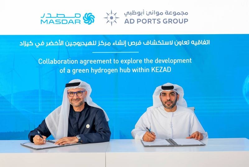AD Ports Group and Masdar to Explore the Development of a Green Hydrogen Hub Within KEZAD, AD Ports Group, a leading facilitator of global trade, logistics, and industry, and Abu Dhabi Future Energy Company PJSC – Masdar, the UAE’s clean energy powerhouse, have announced the signing of a Memorandum of Understanding (MoU) on the sidelines of the UN Climate Change Conference, COP28, in Dubai.