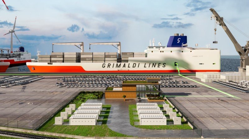 Green Shore Power – The installation will feature 2 shore connections with a total capacity of 5MW, primarily for Grimaldi’s new ro-ro vessels. The commissioned projects represent a €25 to €30 million investment, for which the Flemish Agency for Innovation (VLAIO) has granted a €4 million subsidy. Operational by 2026, the installation is designed for future-proof expansion to accommodate additional vessels. Initially, 100% green electricity will be generated by the 3 wind turbines installed on the terminal site and operated by Wind aan de Stroom. Additionally, extra capacity will be generated by solar panels on the roof of the multilevel parking garage of the terminal and 2 additional wind turbines planned for installation on the terminal. The produced green energy will be stored in a large battery system to optimize its use.