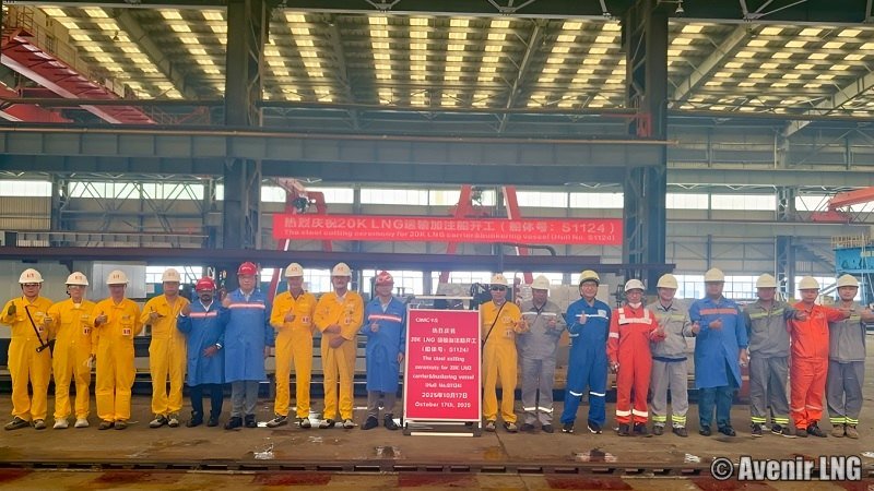 LONDON, UK | Octboer 24, 2025 – Avenir LNG, one of the world’s foremost providers of small-scale liquefied natural gas (LNG) and a pioneer in LNG bunkering, has marked another key milestone in its ambitious fleet expansion program with the steel cutting of its next 20,000 cubic meter (cbm) LNG bunkering vessel. The ceremony for Hull S1124 took place on 17 October 2025 at the Nantong CIMC Sinopacific Offshore & Engineering Co., Ltd. (CIMC SOE) shipyard in China, signifying the start of construction on the second vessel in Avenir LNG’s latest newbuild series.