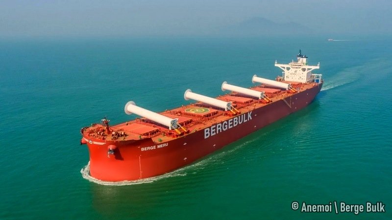 London, UK | January 27, 2026 – In a significant stride toward the decarbonization of heavy maritime transport, Berge Bulk and Anemoi Marine Technologies have announced the successful deployment of four large-scale folding Rotor Sails on the Berge Meru.
