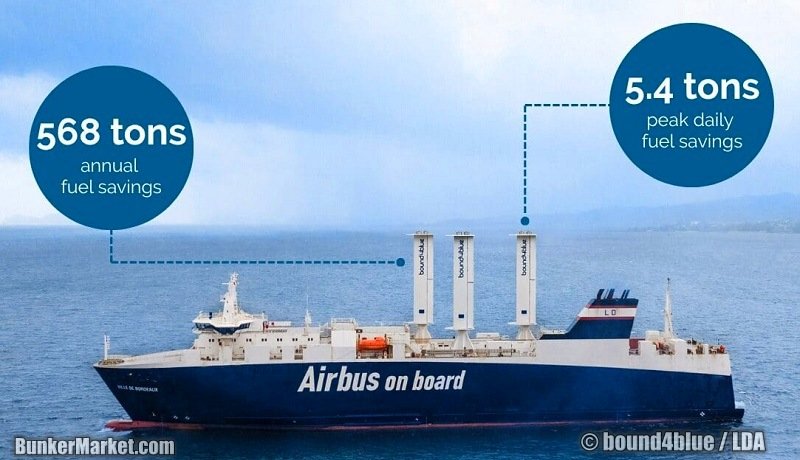 Barcelona / Paris / June 25, 2025 — Wind propulsion specialist bound4blue has achieved a significant breakthrough in real-world fuel efficiency with its eSAIL® technology. A newly released, third-party assessment confirms that the Ville de Bordeaux, a Ro-Ro vessel owned by Louis Dreyfus Armateurs (LDA) and chartered by Airbus, has achieved average daily fuel savings of 1.7 metric tons over the past 12 months — with peak daily savings reaching as high as 5.4 metric tons.