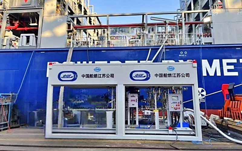 The operation was carried out using a mobile methanol bunkering skid jointly developed by CHIMBUSCO Jiangsu and Lianyungang Ocean Fluid Handling Equipment Co., Ltd. The shore-to-ship methanol fuel transfer, which took 2.5 hours, was executed flawlessly. Representatives from Lianyungang Ocean Fluid Handling Equipment Co., Ltd. and Yangzhou COSCO Shipping Heavy Industry observed the operation, which showcased the professionalism of CHIMBUSCO’s team, the advanced capabilities of its equipment, and the precision of its processes.