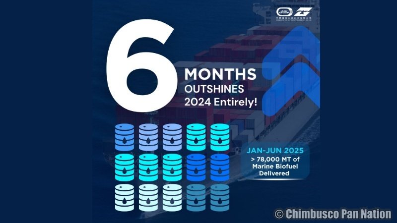 HONG KONG – July 2025 — Chimbusco Pan Nation Petro-Chemical Co., Ltd. (CPN), a leading marine fuel supplier headquartered in Hong Kong, has achieved a major milestone in sustainable bunkering, announcing that its marine biofuel deliveries in the first half of 2025 have already exceeded its total 2024 volume—with over 78,000 metric tonnes (MT) supplied between January and June.
