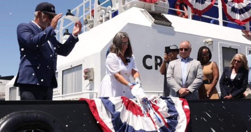 Crowley was joined at the vessel christening by project partners including the Port of San Diego, San Diego County Air Pollution Control District, the California Air Resources Board (CARB), the U.S. EPA, and the U.S. Maritime Administration. The collaborative effort among federal, state, and local partners to decarbonize the port furthers the shared goal of improving air quality for San Diego.