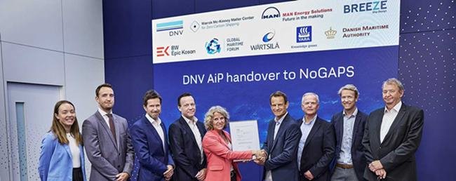 Classification society DNV has awarded the Mærsk Mc-Kinney Møller Center for Zero Carbon Shipping in collaboration with Nordic Green Ammonia Powered Ships (NoGAPS) partners BW Epic Kosan, Yara, MAN Energy Solutions, Wärtsilä, Global Maritime Forum and Breeze Ship Design an Approval in Principle (AiP) for the design of an ammonia-powered gas carrier – the M/S NoGAPS. The certificates were presented during the Nor-Shipping trade fair at the DNV stand.