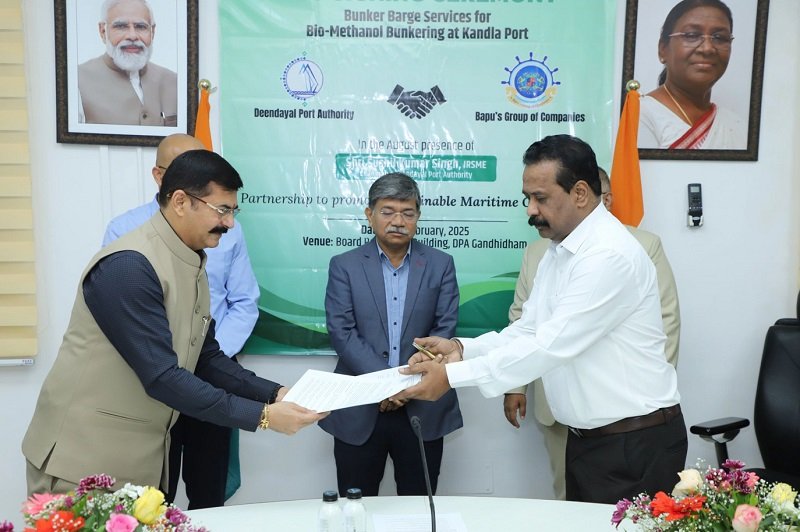 In line with India’s maritime decarbonization goals, Deendayal Port Authority (DPA), Kandla, has officially signed an MoU with Bapu’s Shipping (Jamnagar) Pvt. Ltd. (BSJPL) to provide bunker barge services for bio-methanol bunkering at Kandla Port, located along the Gujarat coast. This collaboration marks a significant milestone in India’s transition to sustainable marine fuel solutions for the maritime industry and aligns with the country’s broader green energy goals.