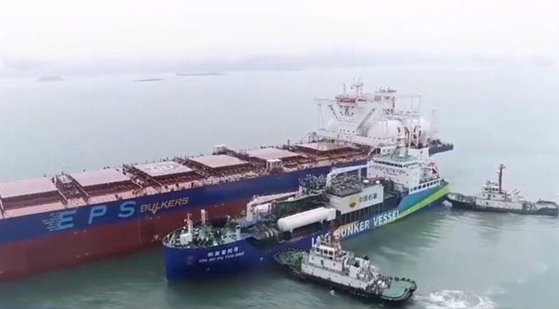 EPS featured on China Central TV as the manager of the first bulk carrier to complete LNG bunkering operations at Zhoushan Anchorage, China, The 210,000 dwt LNG Dual Fuel Newcastlemax Bulk Carrier, M/V Mount Cook, chartered to Rio Tinto, underwent its inaugural LNG bunkering by PetroChina.
