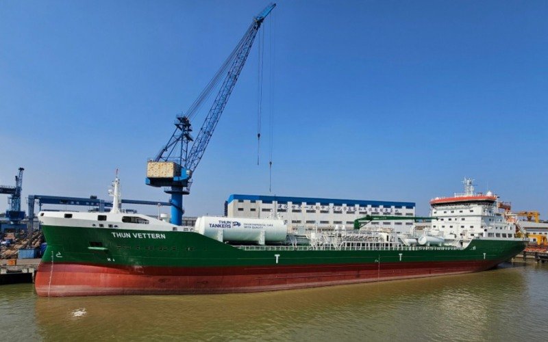 Erik Thun has proudly taken delivery of Thun Vettern, a 17,999-dwt vessel built by China Merchants Jinling Shipyard in Yangzhou. This vessel is an upgraded version of its sister ship, Thun Venern, and represents the latest addition to the “Vinga-series” all of which trade within the Gothia Tanker Alliance.