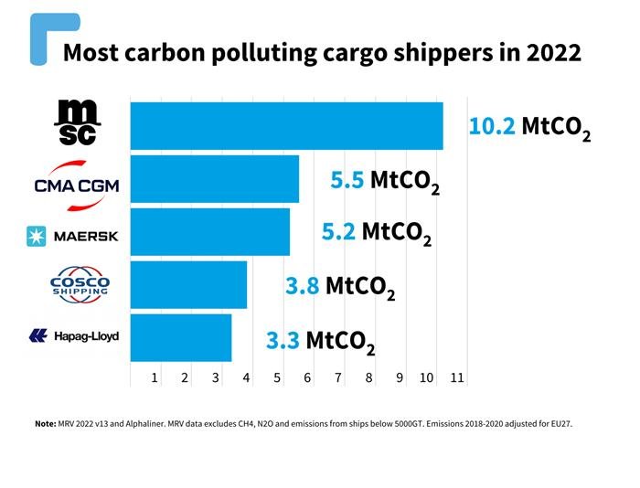Last year, ships visiting European ports emitted nearly 130 million tonnes of CO2. Cargo ships were responsible for the bulk of emissions. MSC, the world’s largest shipping company, was the continent’s biggest carbon emitter. The Swiss-based giant pumped out nearly 10 million tonnes of CO2 last year making it Europe’s 11th biggest polluter. MSC was followed by CMA CGM, Maersk, COSCO and Hapag-Lloyd in the list of shipping emitters.