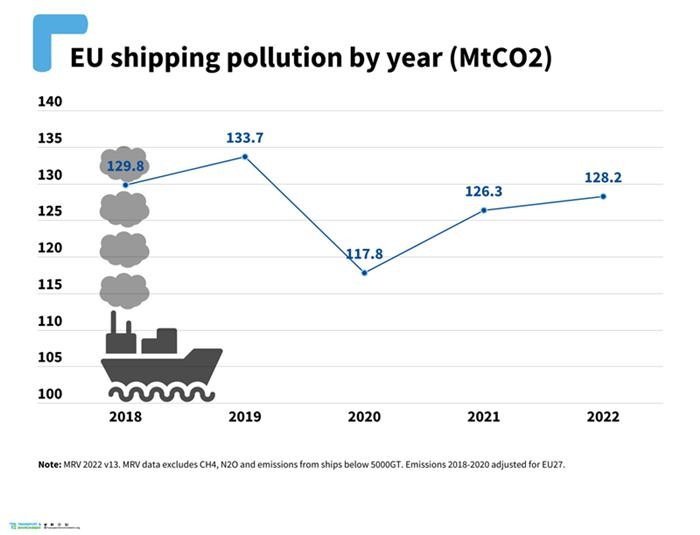 European shipping emissions grew 3% last year as the industry edges closer to pre-pandemic levels, new Transport & Environment (T&E) analysis shows. Cruise ship emissions were well up on the year before while a high number of vessels transporting LNG contributed to driving up emissions. The industry is moving closer to the point of no return, says T&E.