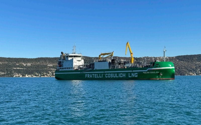 The LNG bunker barge boasts a substantial cargo capacity of 8,200 cubic meters, positioning it as an ideal vessel for bunkering and intricate operations, including cooldowns and gas-ups for various vessel types. Beyond LNG, Paolina Cosulich has the capability to provide 500 metric tons of Marine Gas Oil (MGO), offering flexibility to accommodate diverse fuel requirements.