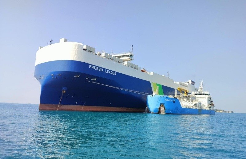 The milestone was reached on March 23rd, 2024, as the FueLNG Bellina successfully conducted the bunkering operation for the NYK Line PCTC Freesia Leader in the port of Singapore. This accomplishment underscores FueLNG’s dedication to advancing sustainable marine fuel alternatives.