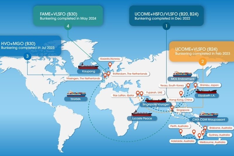 The Global Centre for Maritime Decarbonisation (GCMD) has successfully completed its final supply chain trial for biofuel blended with very low sulfur fuel oil (VLSFO). This marks the end of a series of trials initiated in July 2022 as part of a larger pilot to develop a framework to provide quality, quantity, and GHG abatement assurances for drop-in fuels.