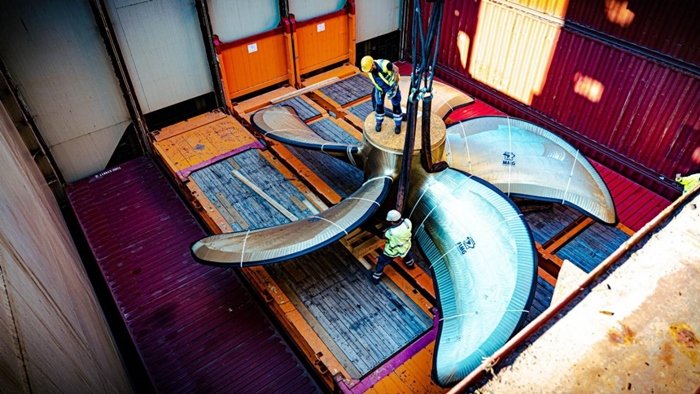 With the loading of the first retrofit propeller in the Port of Hamburg, Hapag-Lloyd is launching its comprehensive Fleet Upgrade Program. The goal is to technically modernise the existing fleet. The propeller, which has been optimised for energy efficiency by the German manufacturer MMG, will be installed on Hapag-Lloyd’s 7,500 TEU “Ningbo Express” in Dubai in September.