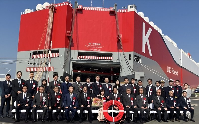 Kawasaki Kisen Kaisha, Ltd. (K LINE) has officially taken delivery of the OCEANUS HIGHWAY, an LNG-fueled car carrier with a capacity to transport 6,900 vehicles. Delivered on February 27, this vessel represents a major step in K LINE’s commitment to reducing its environmental impact. The vessel was constructed by SHIN KURUSHIMA TOYOHASHI SHIPBUILDING CO., LTD.