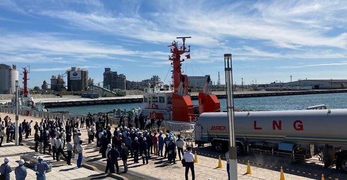 The Ishin is currently engaged in escorting large freighters and other vessels during port calling in/out operations, mainly in Port of Sakai-Semboku, Osaka. This is the third LNG bunkering trial for the tug, following earlier trials in Kobe and Nagoya. The LNG fuel was supplied by the truck-to-ship system using tanker trucks, which is also used to supply LNG at Sakai-Semboku.