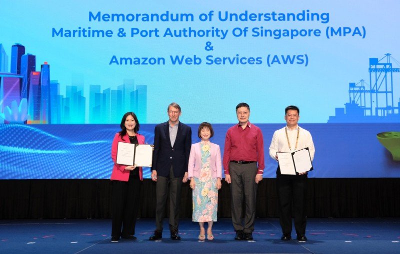 The Maritime and Port Authority of Singapore (MPA) announced a collaboration with Amazon Web Services (AWS), an Amazon.com company, to support the maritime industry’s digital transformation and green transition. MPA will tap on AWS services, including cloud, artificial intelligence (AI), and digital twins, to enhance the industry’s efficiency, safety, and sustainability outcomes. A memorandum of understanding was signed between Mr. David Foo, Assistant Chief Executive (Operations Technology) at MPA, and Ms. Elsie Tan, Country Manager for Worldwide Public Sector, Singapore, AWS, today at the ‘Accelerating Digitalisation and Decarbonisation Conference’ during Singapore Maritime Week (SMW) on 16 April 2024.