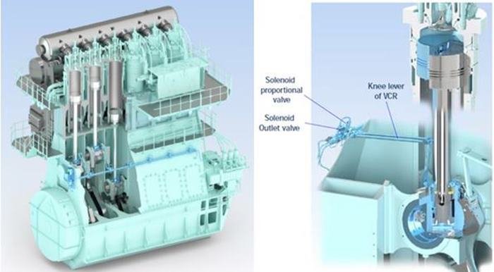 The VCR system can adjust the air compression ratio in the engine combustion chamber to an optimal balance according to engine power and LNG fuel properties. This optimal adjustment will improve fuel efficiency during operation by about 3% in LNG gas mode and about 6% in diesel oil mode.
