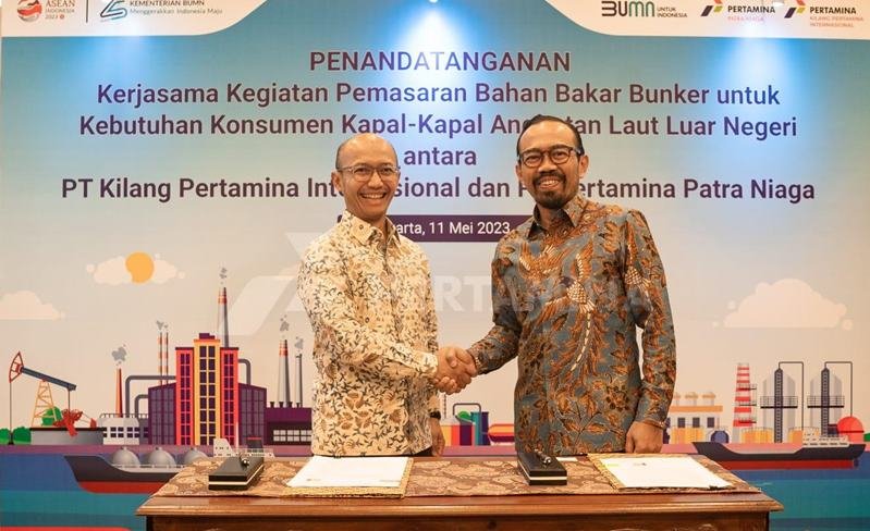 PT Kilang Pertamina Internasional (KPI) and PT Pertamina Patra Niaga (PPN) agreed to sign a cooperation agreement for the marketing of bunker fuel to international bunker markets on Thursday, May 11, 2023, in Jakarta. Through this Pertamina Group synergy, it is expected to obtain highly competitive selling prices and attract consumers to optimize the bunker market, especially for ocean going vessels.