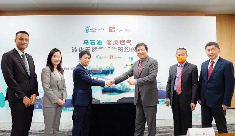 Present at a commemorative event held at the TIGER GAS office were PETRONAS Vice President of Refining, Marketing & Trading Ahmad Adly Alias; Chief Representative of PETRONAS Beijing Representative Office Lisy Lee; Head of PETRONAS Marine’s LNG Bunker Sales Mohd Firdaus Bin Kamilrudin; Chairman of TIGER GROUP Gerry Wang; Vice Chairman of TIGER GAS CC Xue; President of TIGER GAS Junfeng Xu; and Vice President of TIGER GAS, Glenn Qu; as well as other senior leaders from both companies.