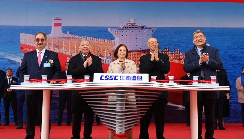 Pacific International Lines (PIL), a global leading container line, has made significant progress in its fleet renewal program by naming its fourth 14,000 TEU LNG dual-fuel container vessel. The vessel, Kota Embun, was officially named in a ceremony at the Shanghai shipyard, with Mrs. Evelyn Ng, wife of Mr. Ng Kee Choe, Deputy Chairman of PIL, performing the naming ceremony.