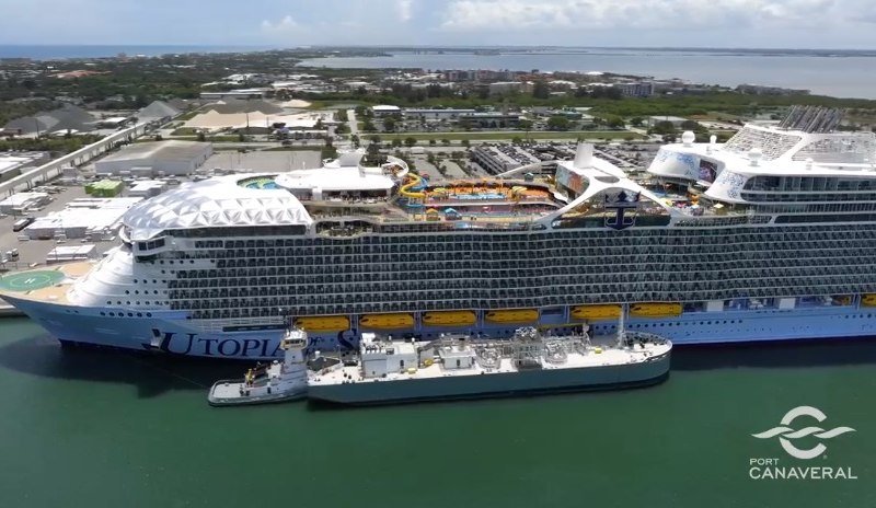 In a landmark event for North America, Port Canaveral witnessed a first-of-its-kind operation where two ATB tug-barges simultaneously conducted ship-to-ship LNG refueling of two LNG-powered homeported cruise ships. The sister vessels, Clean Canaveral and Clean Everglades, supplied LNG fuel to the Disney Cruise Line‘s Disney Wish and Royal Caribbean‘s Utopia of the Seas, respectively, while both ships were docked at their cruise terminals. This historic event was facilitated by JAX LNG, a joint venture between Pivotal LNG and Seaside LNG, serving as the fuel supplier.