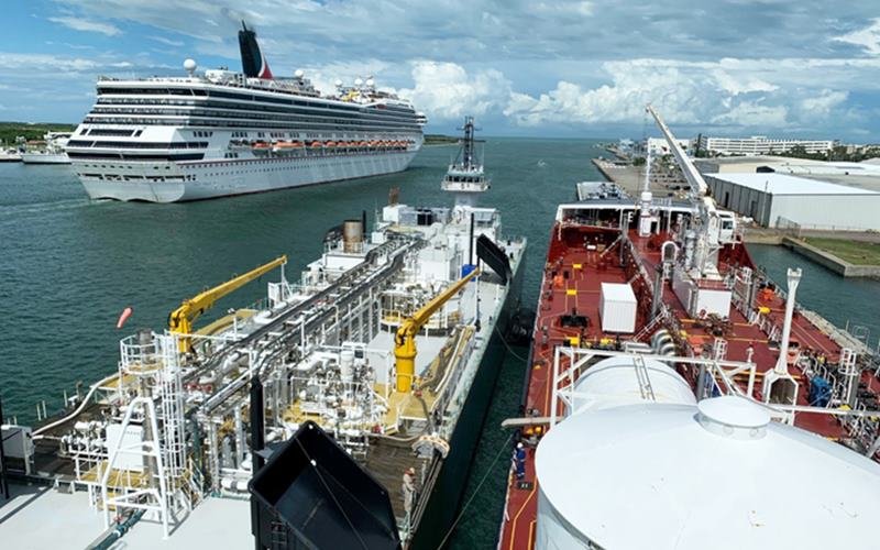 The barge-to-ship fueling operation of a cargo vessel was closely coordinated between Port Canaveral, JAX LNG, U.S. Coast Guard Marine Safety Unit Canaveral and Canaveral Fire Rescue to ensure the LNG bunkering was properly planned, coordinated, and conducted safely and efficiently.