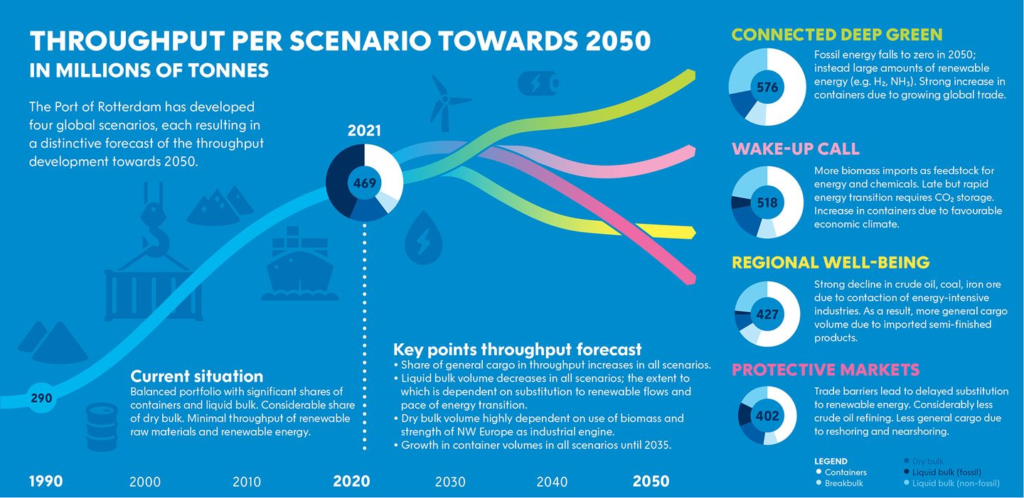 “These latest estimates show that our portfolio will radically change in the next 30 years. The global scenarios help us to strengthen the position of the port-industrial complex in a targeted manner by focusing on sufficient production and processing capacity, good connectivity with key hinterland markets and accelerating sustainability.”