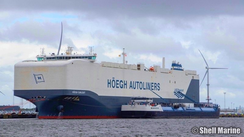 ZEEBRUGGE — Shell Marine has successfully completed the LNG bunkering of the Höegh Sunlight, a dual-fuel Pure Car and Truck Carrier (PCTC), via its dedicated bunker barge Energy Stockholm at the Port of Zeebrugge. The operation was carried out in collaboration with Glander International Bunkering and Unicore Fuel Europe, marking the latest milestone in a growing series of bunkering operations for Höegh Autoliners’ expanding Aurora Class fleet across Europe.