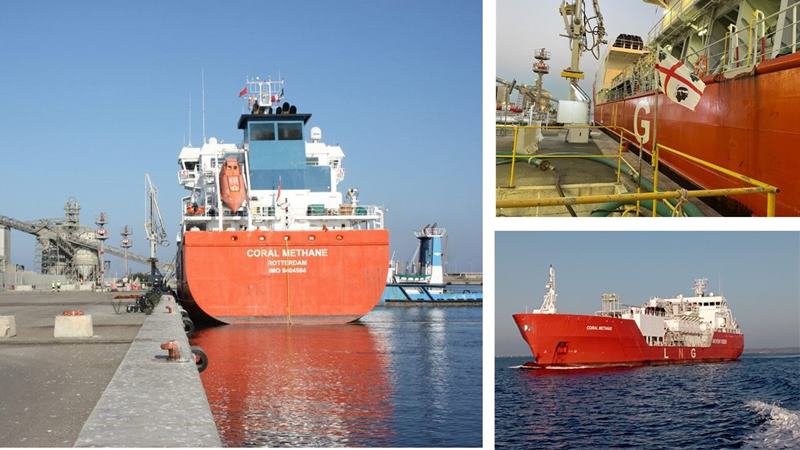 The Coral Methane LNG bunker vessel is chartered and operated by Shell, primarily operates in the Mediterranean. It has a capacity of 7,500 cubic meters and is owned by the Dutch shipping company Anthony Veder.