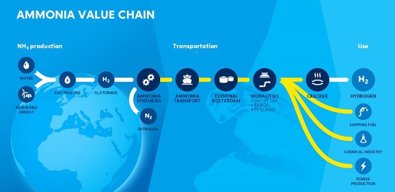 A study by Fluor shows that it is technically and economically feasible to safely convert ammonia into 1 million tons of hydrogen per year using a large-scale cracker. The study was commissioned by the Port of Rotterdam Authority and 17 companies from the region.