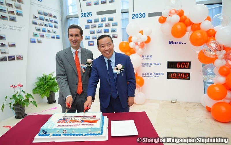 Shanghai, China – August 8, 2025 – Shanghai Waigaoqiao Shipbuilding Co., Ltd. (SWS), a subsidiary of China State Shipbuilding Corporation Limited (CSSC), has officially delivered its 600th vessel since its establishment, marking a significant milestone for China’s maritime industry. The vessel, named GRANDE TIANJIN, is a 9,000-car capacity Pure Car and Truck Carrier (PCTC) built for Italy’s Grimaldi Group—one of Europe’s leading Ro-Ro shipping operators.