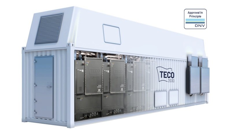 TECO 2030, an innovative engineering and equipment development company committed to advancing sustainable solutions, has, in connection with the HyEkoTank project, received Approval in Principle (AIP) from the Norwegian classification society DNV for a containerized fuel cell power generator (FCPG) designed for oceangoing applications.