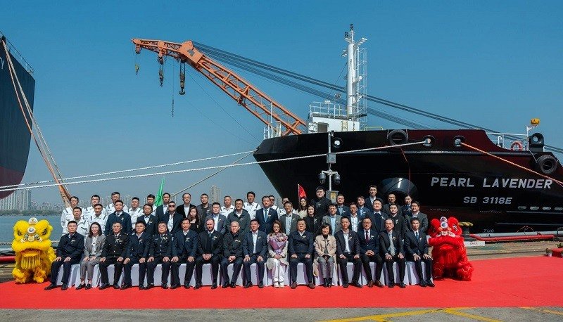TFG Marine, the leading international marine fuel joint venture founded by Trafigura, Frontline, and Golden Ocean, has attended the delivery of the first of four newbuild IMO Type II chemical bunkering tankers, the Pearl Lavender. This milestone delivery ceremony took place this week at China Merchants Jinling Shipyard in Nanjing, China, in the presence of key stakeholders, including TFG Marine and Consort Bunkers PTE LTD, the vessel’s owner.