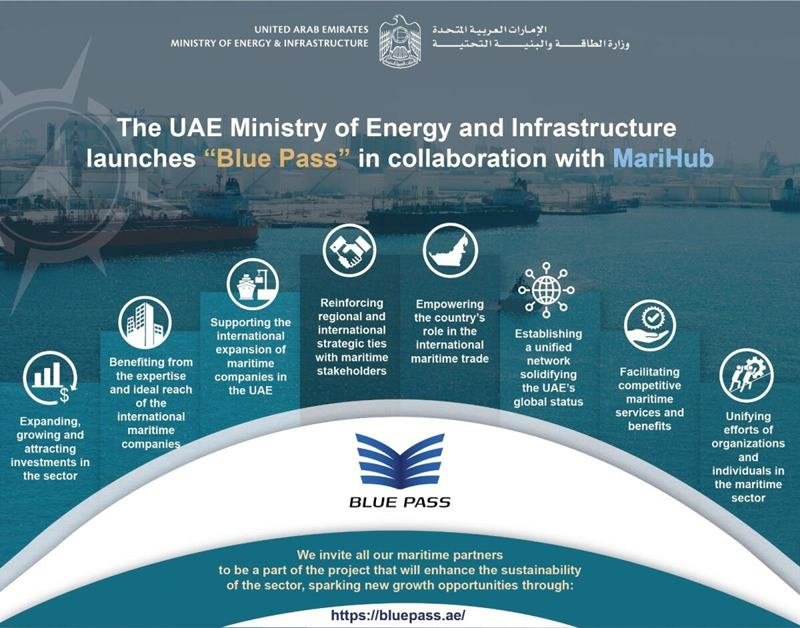 The Ministry of Energy and Infrastructure has announced the launch of the “Blue Pass” project in collaboration with Marihub, aimed at creating a cluster of local and international maritime organisations to exchange their services. The project aims to enhance the competitiveness of the UAE’s national maritime sector and promote its position as a leading maritime hub.