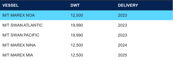 The expansion includes the acquisition of one of our time charter vessels, M/T Marex Noa, which will be renamed M/T Jutlandia Swan and added to the company’s own fleet, May 2023.