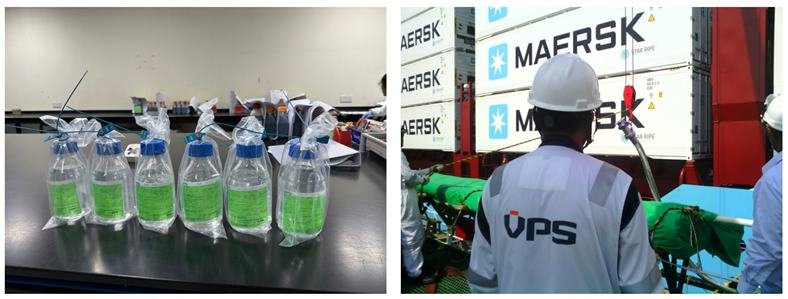 For the safe transportation of methanol samples to the VPS laboratory, the transfer by airplane had to comply with the International Air Transport Association (IATA) rules for the transportation of dangerous goods. Notably, when considering the use of methanol as a marine fuel, it is the responsibility of the entity sending methanol samples for testing to ensure that they are trained and accredited to meet IATA standards, such as the vessel crew or vessel agent.