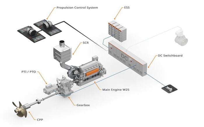 The three 9500 DWT vessels will each operate with one six-cylinder Wärtsilä 25 main engine fitted with a Wärtsilä NOx reduction system, a Wärtsilä gearbox and controllable pitch propeller with shaft line, a Wärtsilä Pro-Touch bridge control system, the Hybrid system with DC hub and 620kWh battery capacity, the control system, as well as the battery, power and energy management systems.