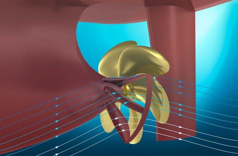 EnergoFlow is an innovative pre-swirl stator that creates an optimal inflow for the propeller, reducing fuel consumption and emissions in all operating conditions. The EnergoProFin is an energy saving propeller cap with fins that rotate together with the propeller. It reduces the energy losses created by the propeller hub vortex, increasing overall propulsion efficiency and significantly reducing underwater noise.
