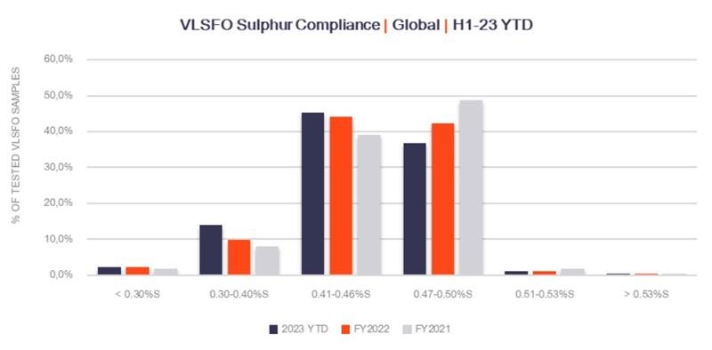 Moreover, data indicates that fuel suppliers in the current year are generating more fuel falling within the 0.41%-0.46% sulfur range than in the 0.47%-0.50% range observed in the past two years. This trend translates to a reduced likelihood of VLSFOs falling outside the 95%-confidence interval or deviating from specifications.