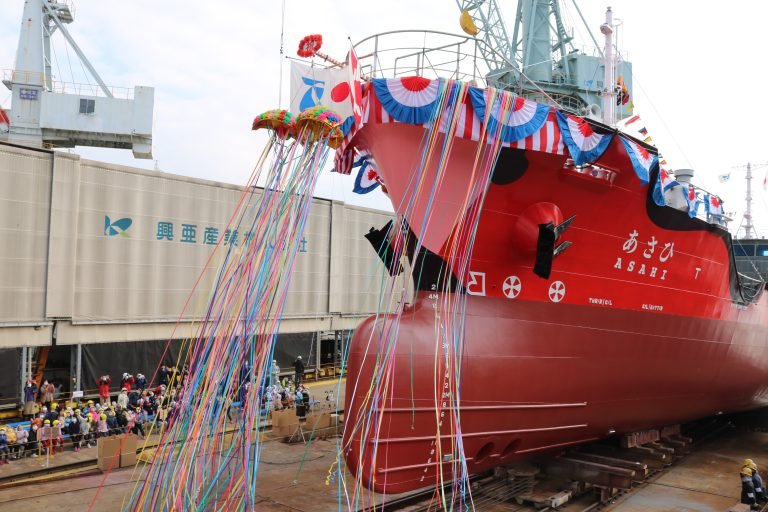 MOL’s President & CEO – Takeshi Hashimoto and Asahi Tanker Co.’s President – Kazunori Nakai today announced that on April 26, the Asahi Tanker owned and operated tanker ASAHI the world’s first pure battery tanker to operate completely on electricity, bunkered fuel on the MOL-operated car carrier VICTORIOUS ACE at the Daikoku Pier C-1 Wharf in Yokohama. This marked a commemorative moment for the ASAHI’s first bunkering operation.